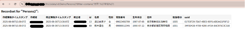 https://xxxx.xxxx.xxx/fmi/odata/v4/Demo/Persons2?$filter=contains(“住所”,’新宿’)