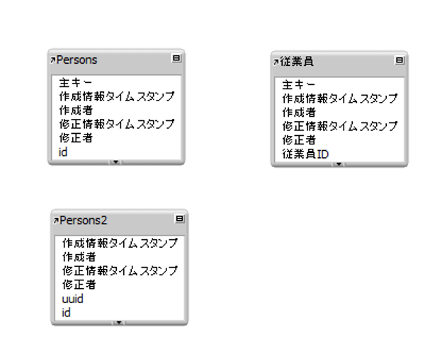今回のテーブル「Persons」「Persons2」は、「担当者ID」を持っています。