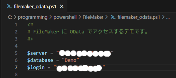 今回のデモの場合、$uri には「https://xxxx.xxxx.xxx/fmi/odata/v4/Demo」という値が入ります。