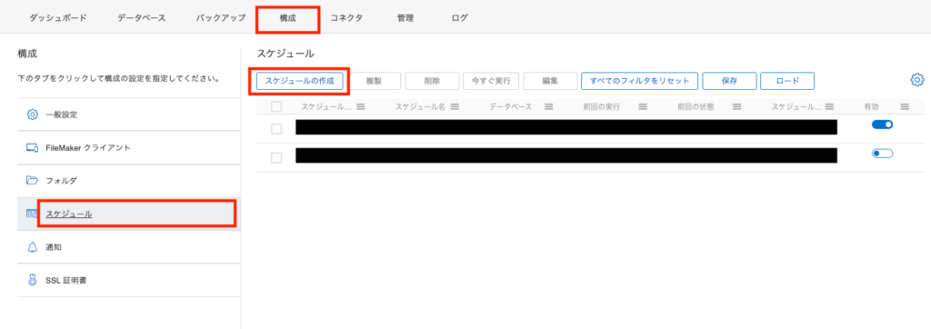 FileMaker ServerのAdmin Consoleで作成したスケジュールを、