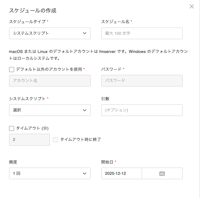 - スケジュールタイプ:システムスクリプト